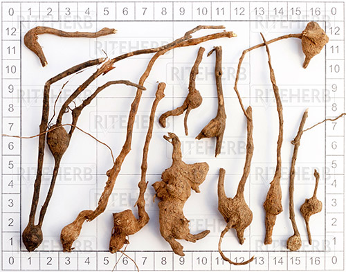 Images of taxonomically authenticated herb part; Botanical Reference Sample (BRS) in a grid as per Indian Pharmacopoeia (IP).